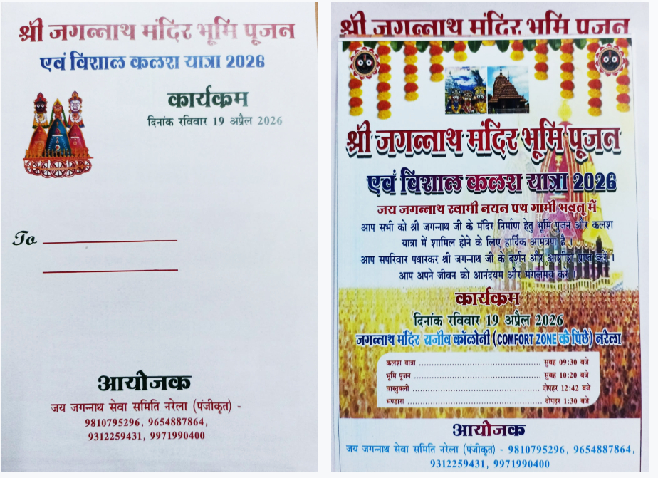 Jai Jagannath Sewa Samiti (Regd), City-Narela, Delhi-110040, is a